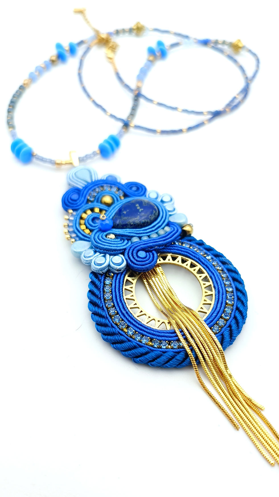Collier/sautoir Lapis lazuli. Bijou brodé à la soutache.